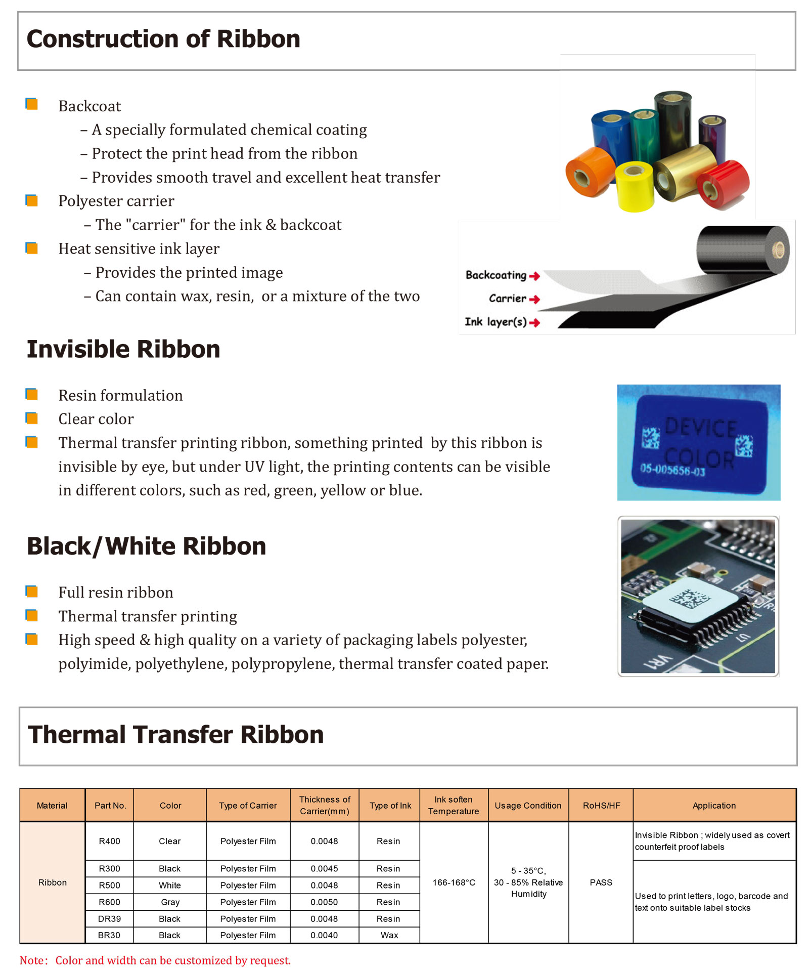 首頁 > 產品 > 印刷 / 模切 > 標簽 > 色帶材料